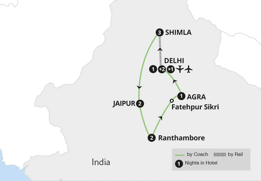 Follow in the footsteps of maharajas on our bestselling Indian tour, uncovering the gems of India's Golden Triangle and the former colonial retreat of Shimla. Embrace the many wonders of this mystical country on this unrivalled overland journey. Enjoy the bustle of Delhi's bazaars on a rickshaw ride, visit Shimla to uncover the former...