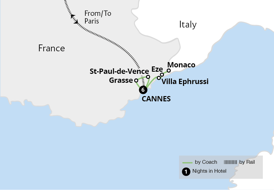 Embrace the sights, scents and flavours of the French Riviera from a boutique hotel in the popular coastal town of Cannes. Admire the wonderful gardens at St-Jean-Cap-Ferrat's opulent Villa Ephrussi de Rothschild and witness the time-honoured Changing of the Guards ceremony in Monaco. Tour the quaint Provençal town of Èze to enjoy...