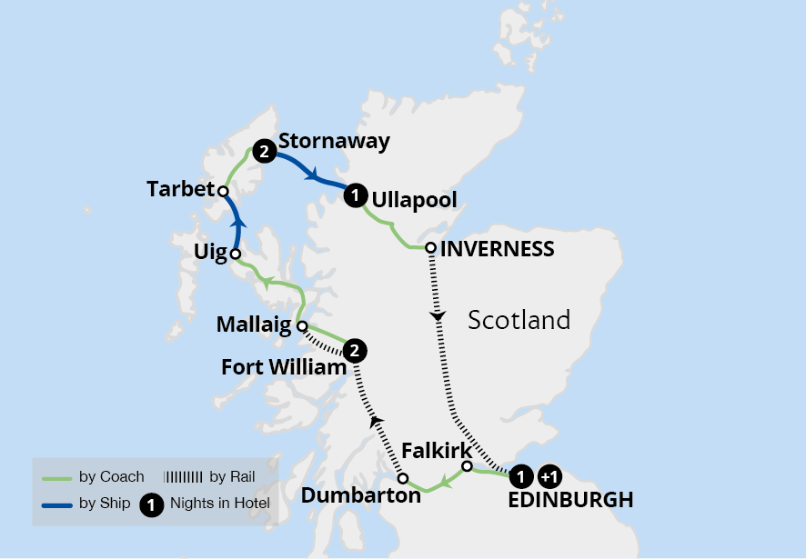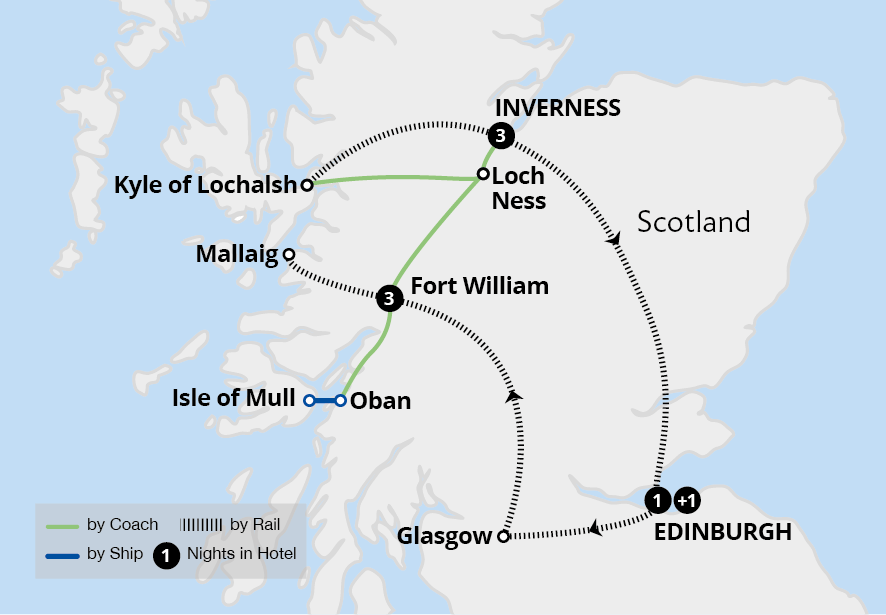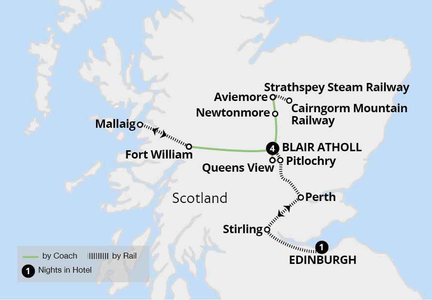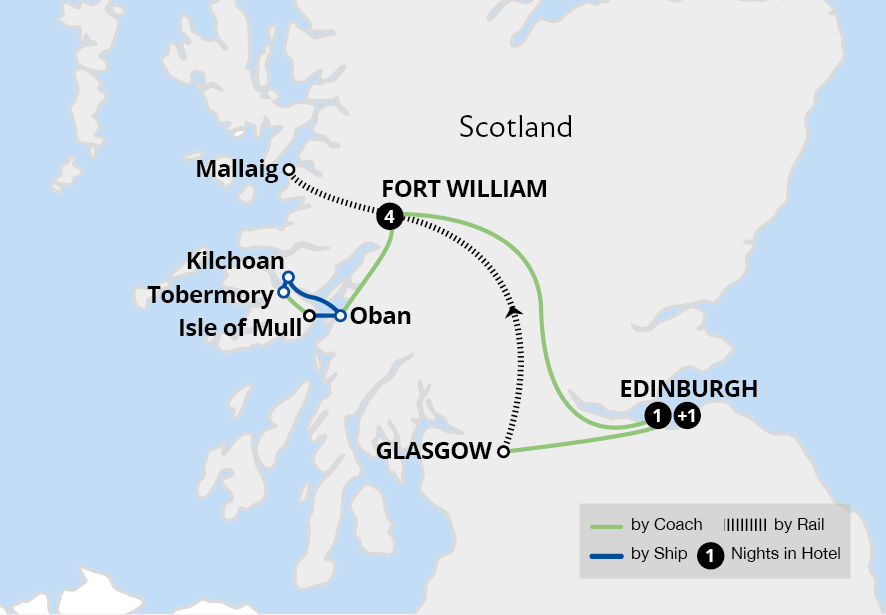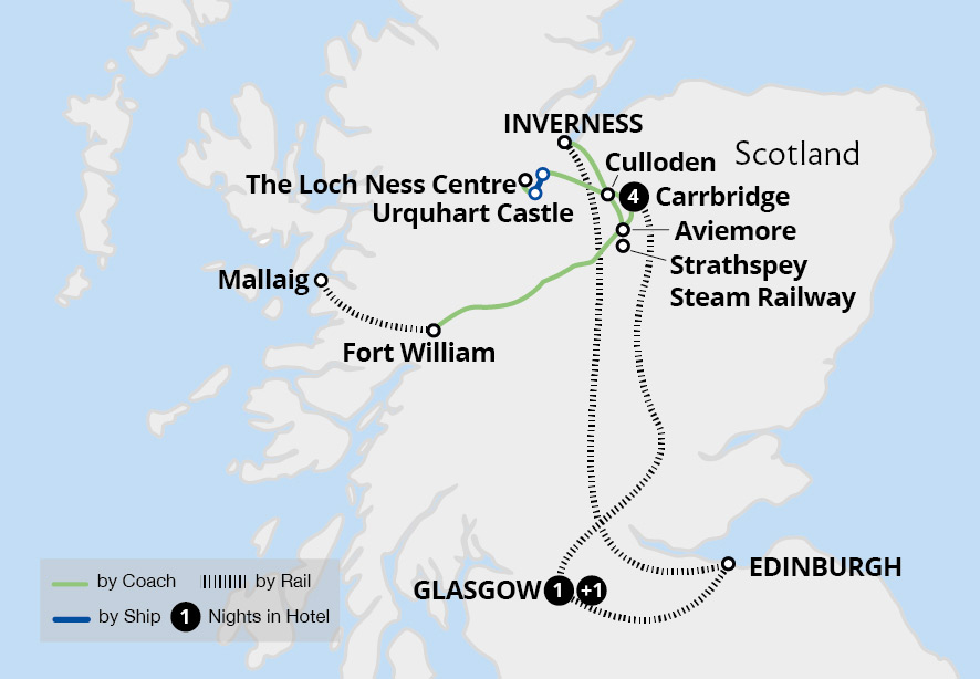 Starting from the historic city of Glasgow we visit the magnificent Scottish Highlands, soaking up the wonders of Highland scenery on journeys aboard the legendary Jacobite steam train and Strathspey Steam Railway. Delve into Scotland's fascinating heritage and rich history with a guided tour of Edinburgh Castle, take a trip into the past...