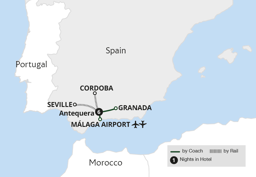 Discover the best of Andalucía on this unforgettable holiday, exploring the region's three most iconic cities. There is also plenty of free time for you to relax by the hotel pool or explore the local area at your leisure. From a base in Antequera, often referred to as 'the crossroads of Andalucía', embark on guided tours of the historic...