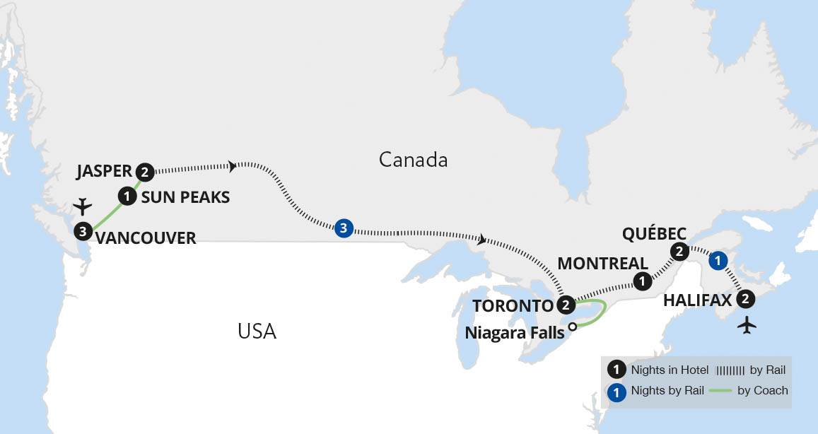 A magnificent small-group tour across the remarkable landscapes of Canada. This holiday features stays in the country's grandest hotels and is connected by journeys on the Ocean, VIA Rail's Canadian and the Rocky Mountaineer. From Québec City's world-famous Le Château Frontenac and on to Toronto, Jasper and Banff then on to Vancouver and...