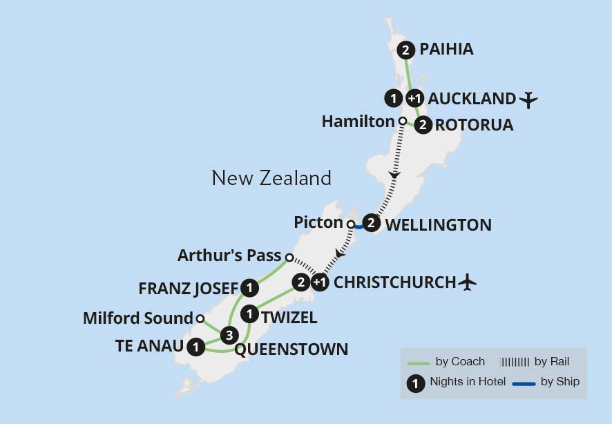 Discover New Zealand's dynamic cities, extraordinary national parks, spectacular alpine mountains, glacial lakes and breathtaking Fiordland on this extensive tour of the North and South Islands. This epic adventure combines the greatest features of this wonderful country in one holiday: superb railways, incredible landscapes and the warm...