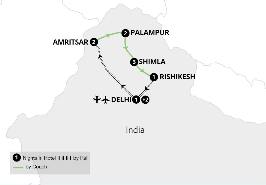 From Punjab to the banks of the Ganges, embark on an unforgettable journey through spiritual locations in northern India. Experience the cultural hearts of Sikhism and Buddhism by witnessing the enchanting Palki ceremony at the Golden Temple in Amritsar and visiting Dharamshala. Tour a vast tea estate in the foothills of the Himalayas and follow...