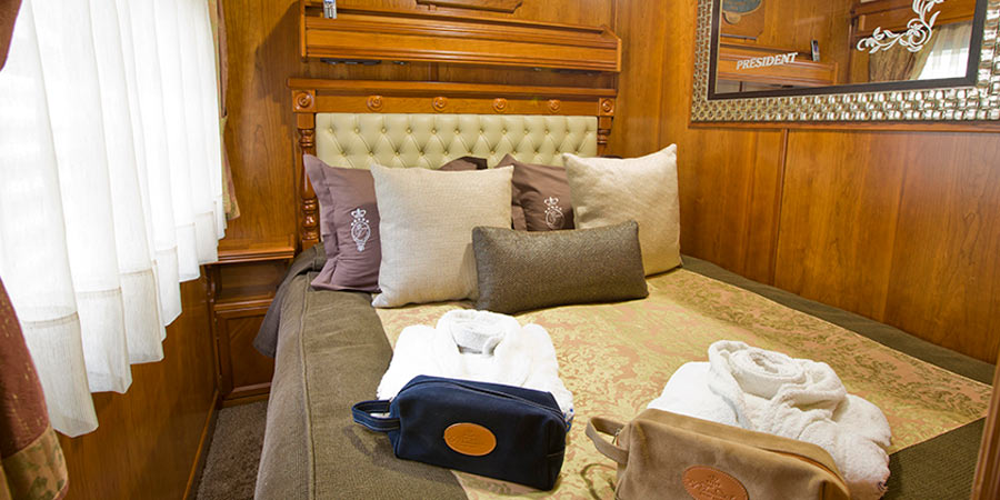 14 beautifully designed deluxe suites offer spacious and sumptuous accommodation for guests aboard El Transcantabrico. Each suite is wood panelled throughout to give it the feel of luxurious bygone times. There's a living room with plush sofa and desk, private bathrooms have a shower that doubles as a steam room, and bedrooms feature double beds or singles that convert into sofas for your comfort during the day. Extra beds for children can be provided on request.