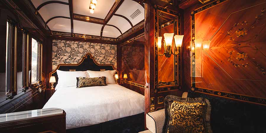 Suites are beautifully designed and are very spacious, featuring a marble en-suite. A double bed or twin beds, transform into a lounge area by day, as the bed converts into a comfortable seating space. Plush fabrics and furnishings channel famed Art Deco designers, such as Dufrene and Lalique. Large windows offer sweeping views of the passing scenery.